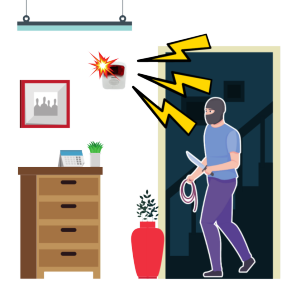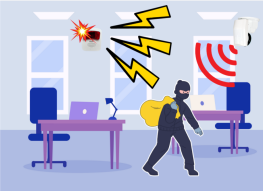 ■ 無人事務所や店舗の防犯 ■ 休日で人がいない事務所や サロン・店舗を狙った空き巣が増えています。 事務所内に入ってきた空き巣を感知し、 強烈な警報サイレンを鳴らします。 |
